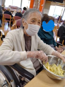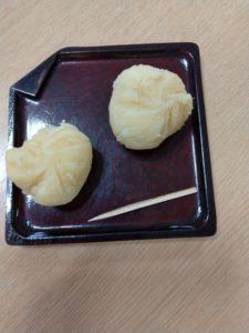 蒸かしたさつまいもに、リンゴジャムを入れて、サランラップで丸めて絞れば、茶巾しぼりの完成!!